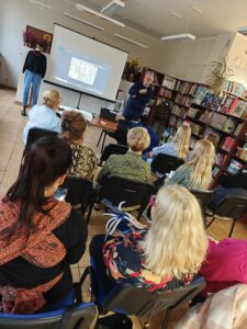 Podczas wykładu nasz gość opowiadał o chełmskiej jakli, jednym z najbardziej charakterystycznych elementów kobiecego stroju ludowego z regionu. Uczestnicy mieli okazję poznać historię tego ubioru, jego symbolikę oraz sposób, w jaki przez lata zmieniał się jego krój i znaczenie. Nie zabrakło ciekawostek dotyczących tkanin, zdobień i tradycyjnych sposobów szycia. Spotkanie było również wprowadzeniem do warsztatów krawieckich, które wkrótce się rozpoczną. Podczas zajęć uczestnicy będą szyć jakle w nowoczesnej odsłonie – z zachowaniem tradycyjnych akcentów, które nadają im wyjątkowego, regionalnego charakteru.