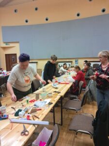 Podczas spotkania uczestnicy mieli okazję poznać tajniki składania w całość tradycyjnych wianków – dowiedzieliśmy się, jaka jest właściwa kolejność układania kwiatów, a nasze galandy zaczęły nabierać kształtu. Efekty pracy były naprawdę zachwycające!